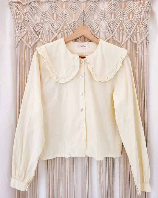 Camisa amarela com pormenores bordados e com gola Peter Pan