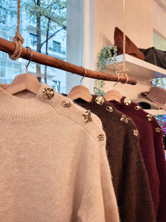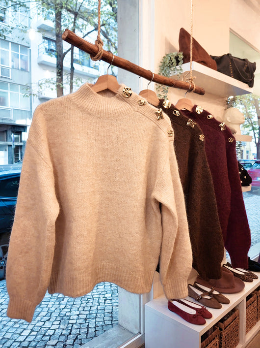 Camisola com meia gola e 4 botões dourados