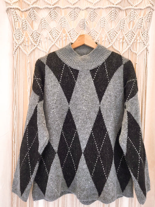 Camisola oversize aos losangos com um pouco de gola