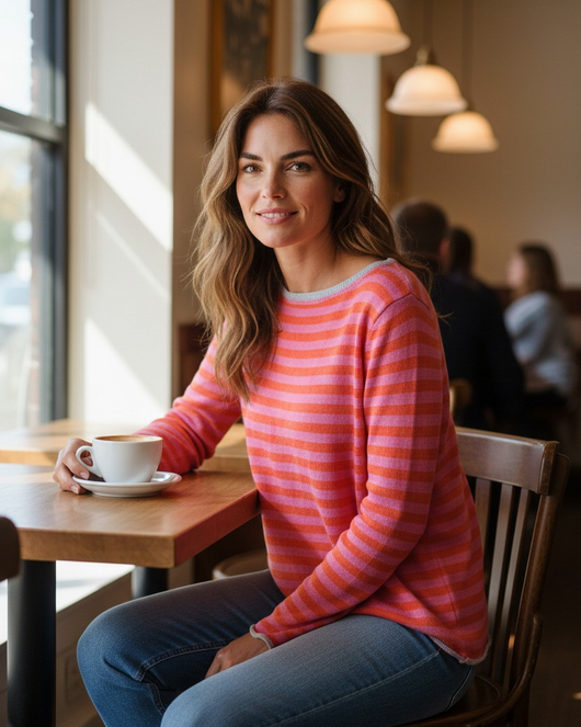 Camisola às riscas de corte a direito e decote barco